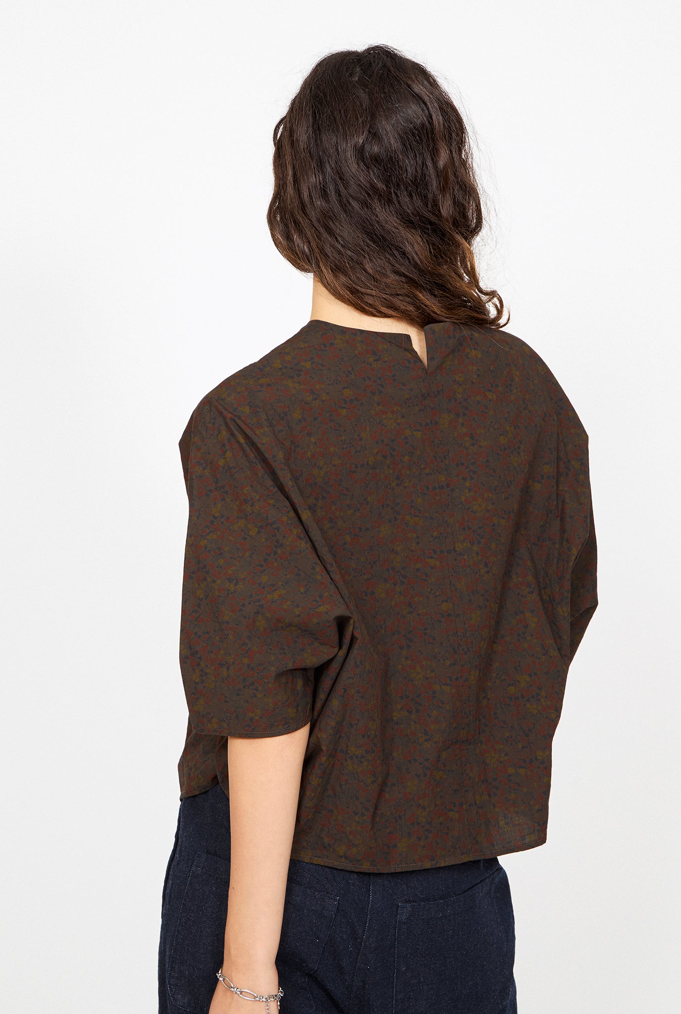 Features a loosely structured cut and gentle crop for everyday wear. Italian made with 99% cotton. Model is 5'8" and wearing a size 0.