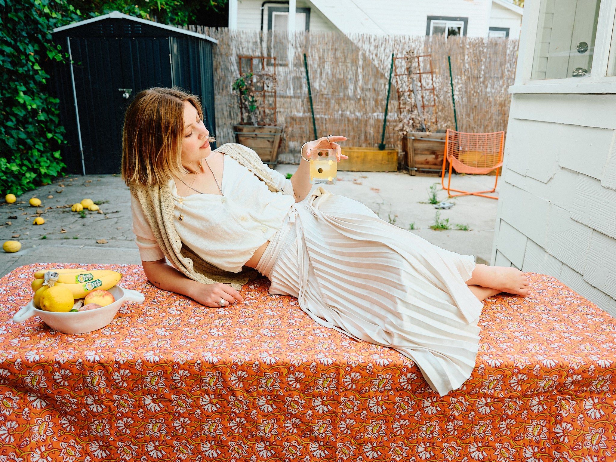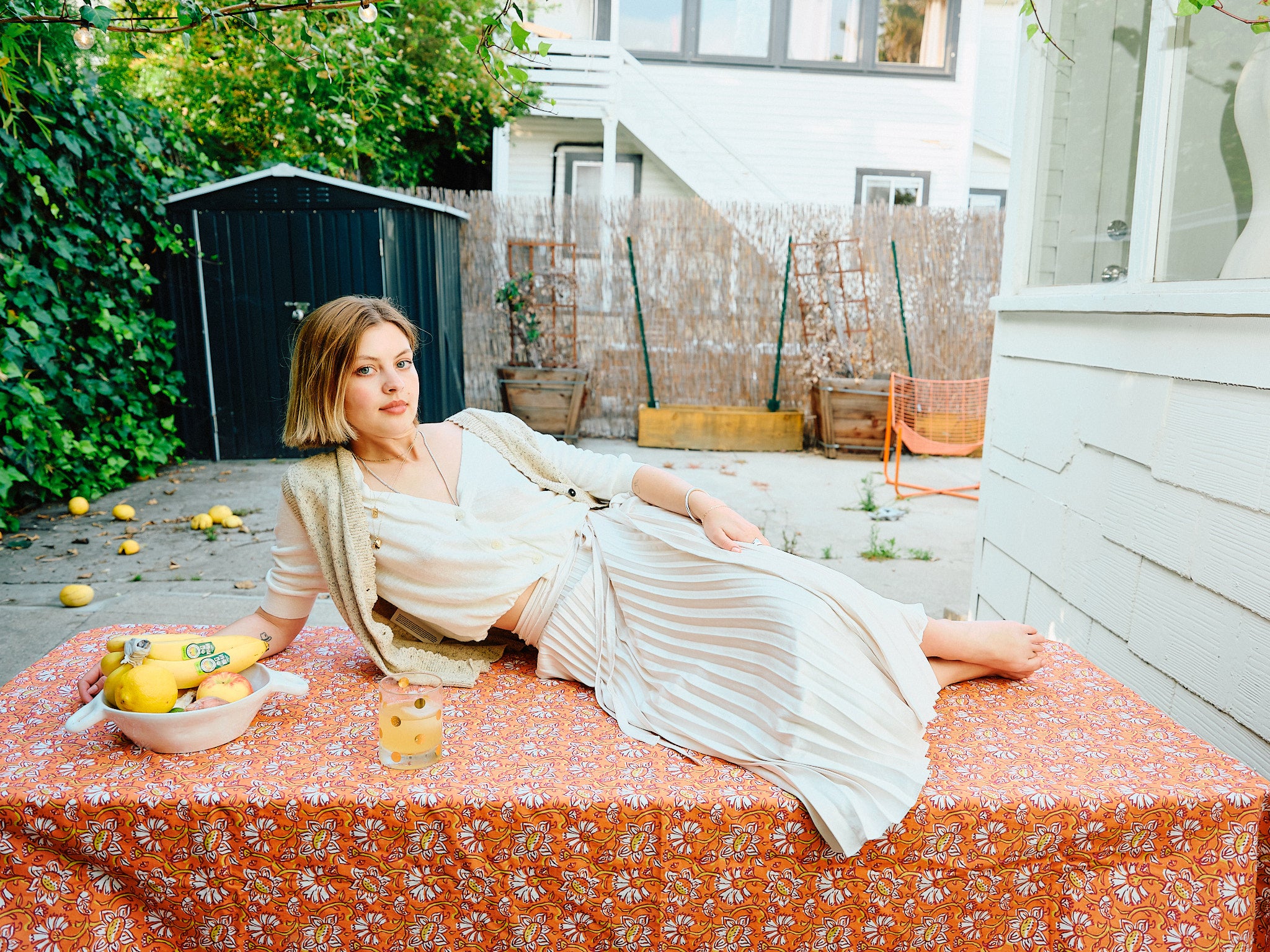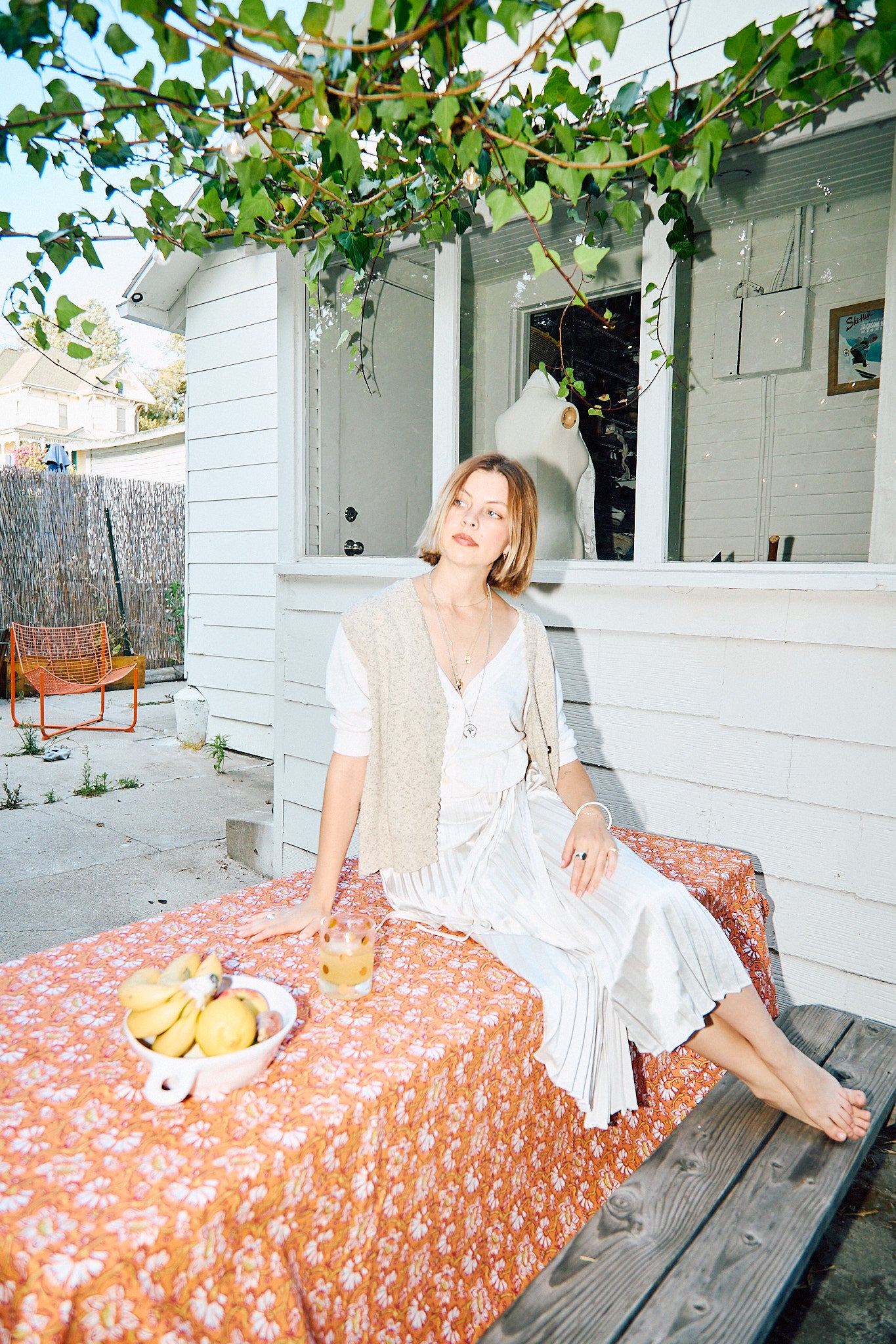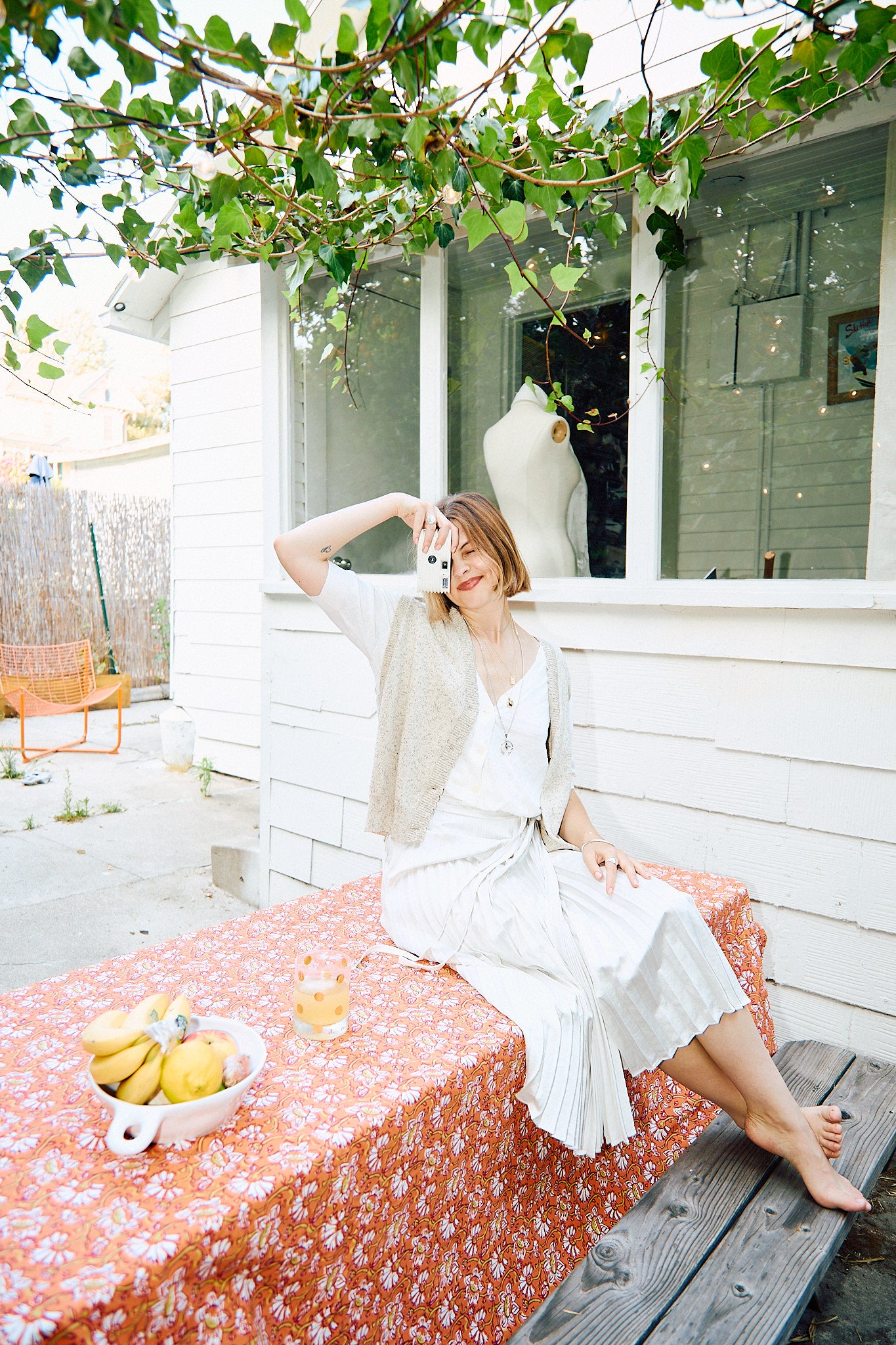 Hazel Brown Pleated Wrap Skirt. Polyester is the only way to make pleats permanent ( they are "melted" in with steam), so we have sourced the most beautiful polyester from Japan. This ankle-grazing skirt that is a simple wrap style with an extra long tie to really punctuate the wrapping bit. The model is 5'6" and wearing a size X-Small.