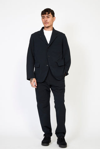 Nanamica Alphadry Club Jacket. 77% Polyester 23% Elasterell Polyester, pairs well with the Alphadry Club Pants. Model is 5'8" and wearing a size Small.