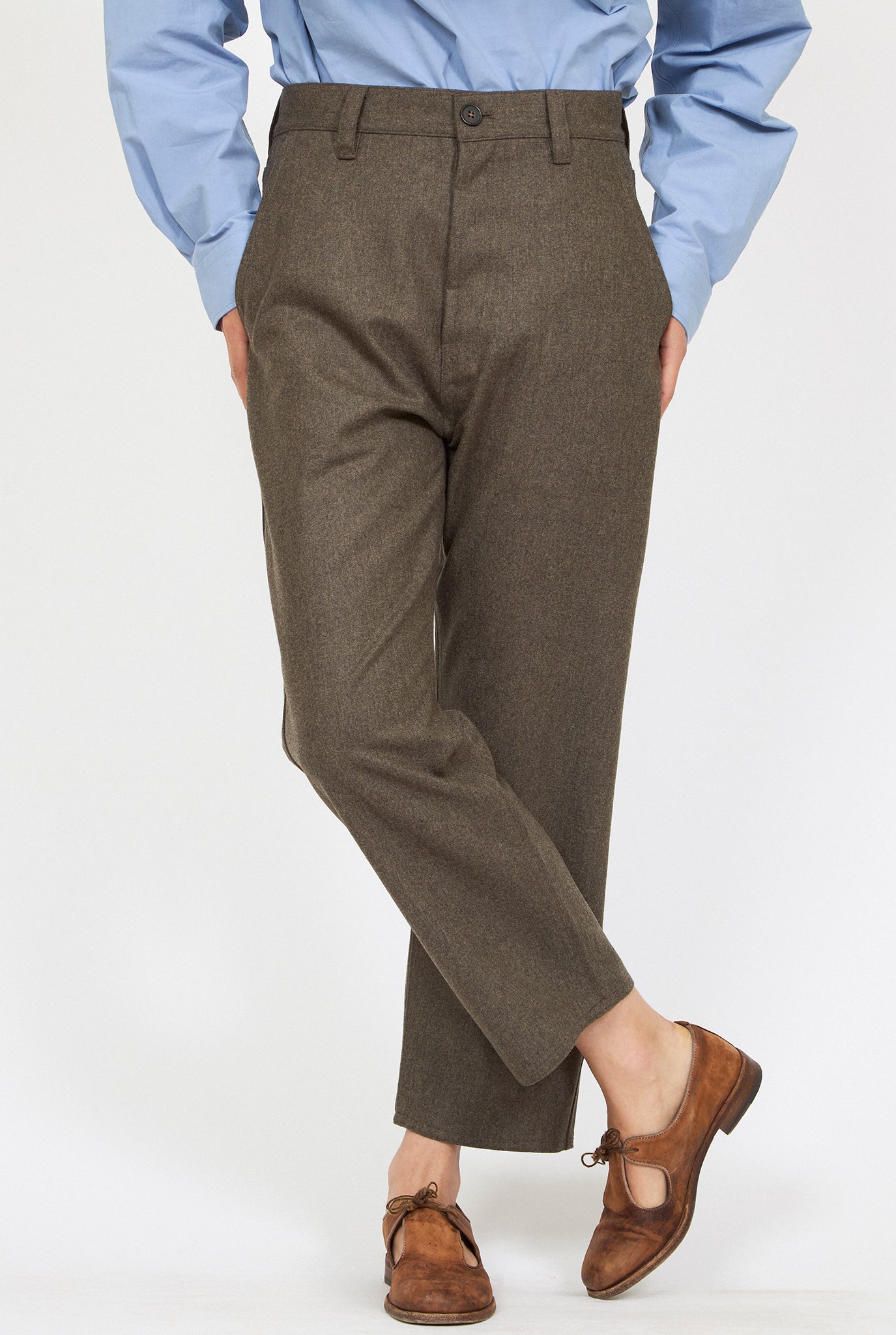 Sofie D'Hoore Pan Jeans. The Pan Jeans are a mid-rise with a straight, cropped leg. They feature a slightly dropped crotch, button and zip fly, belt loops, slant front pockets, and patch back pockets. 100% Wool. Model is 5'8" and wearing a size 34.